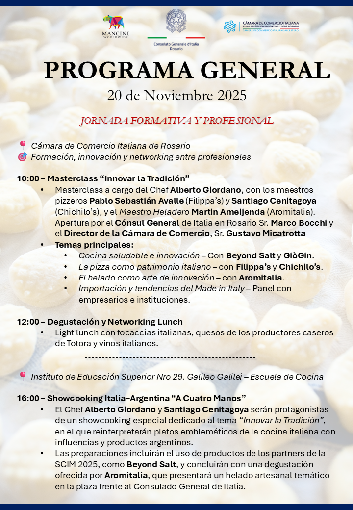 Del 19 al 21 de noviembre de 2025, Rosario fue la protagonista de una nueva edición del certamen internacional dedicado a la cocina y a los productos italianos de calidad, promovido por la red de Embajadas, Consulados, Institutos Italianos de Cultura y Oficinas ICE en todo el mundo.