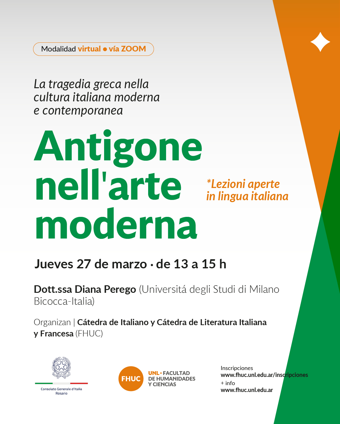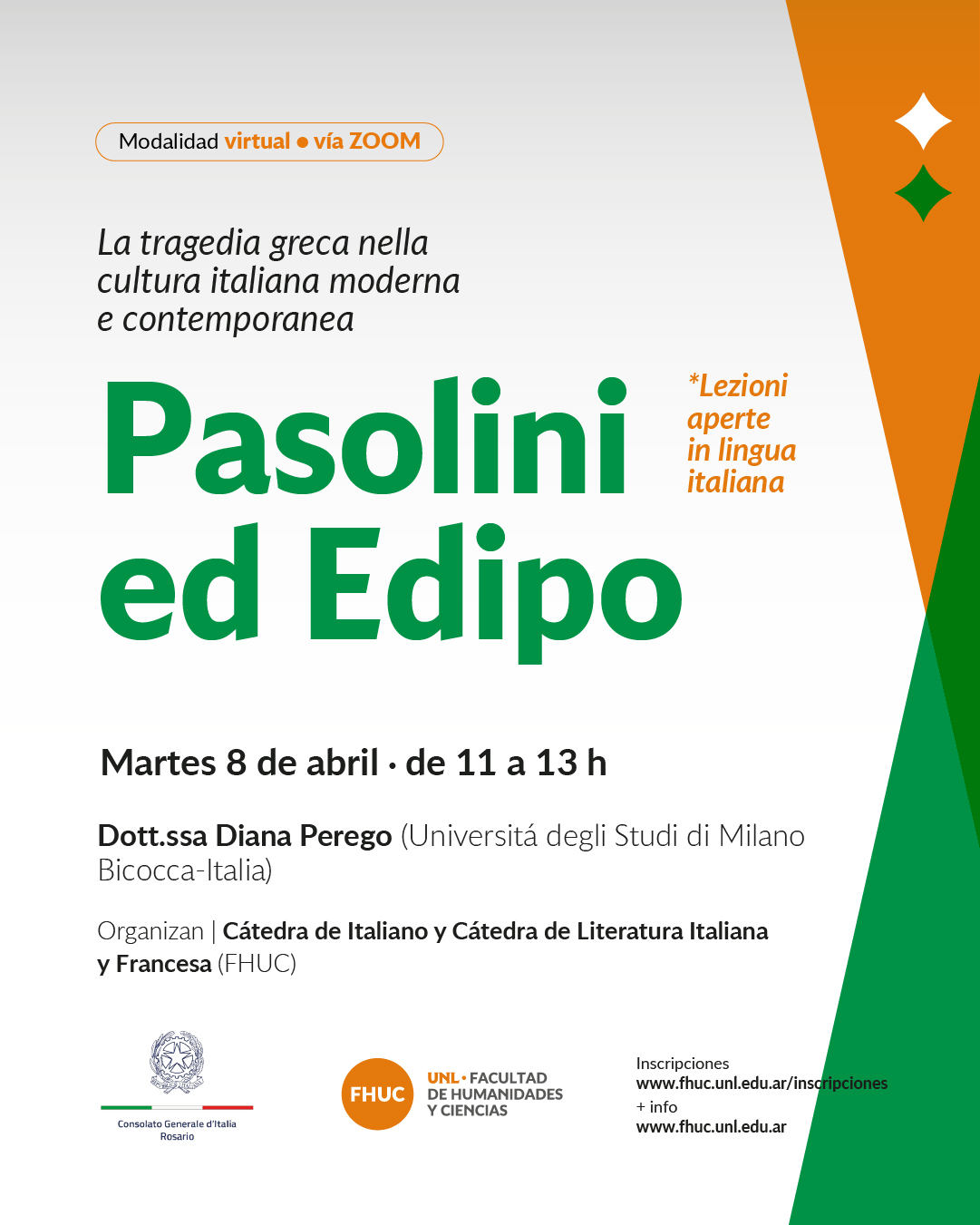 Las clases exploran la influencia de Antígona y Edipo en el arte y la literatura italiana hasta la actualidad. Se adopta un enfoque comparatista e interdisciplinario. La historia del teatro antiguo se estudia en relación con la cultura italiana.